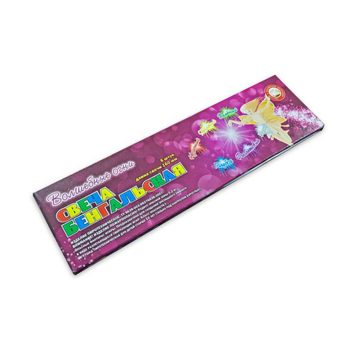 Уникальные цветопламенные Бенгальские свечи "Волшебные огни" обладают эффектом цветного горения шести разных цветов: красным, голубым, фиолетовым, желтым, зеленым и серебристым, разбрасывая при этом золотистые, яркие искры.